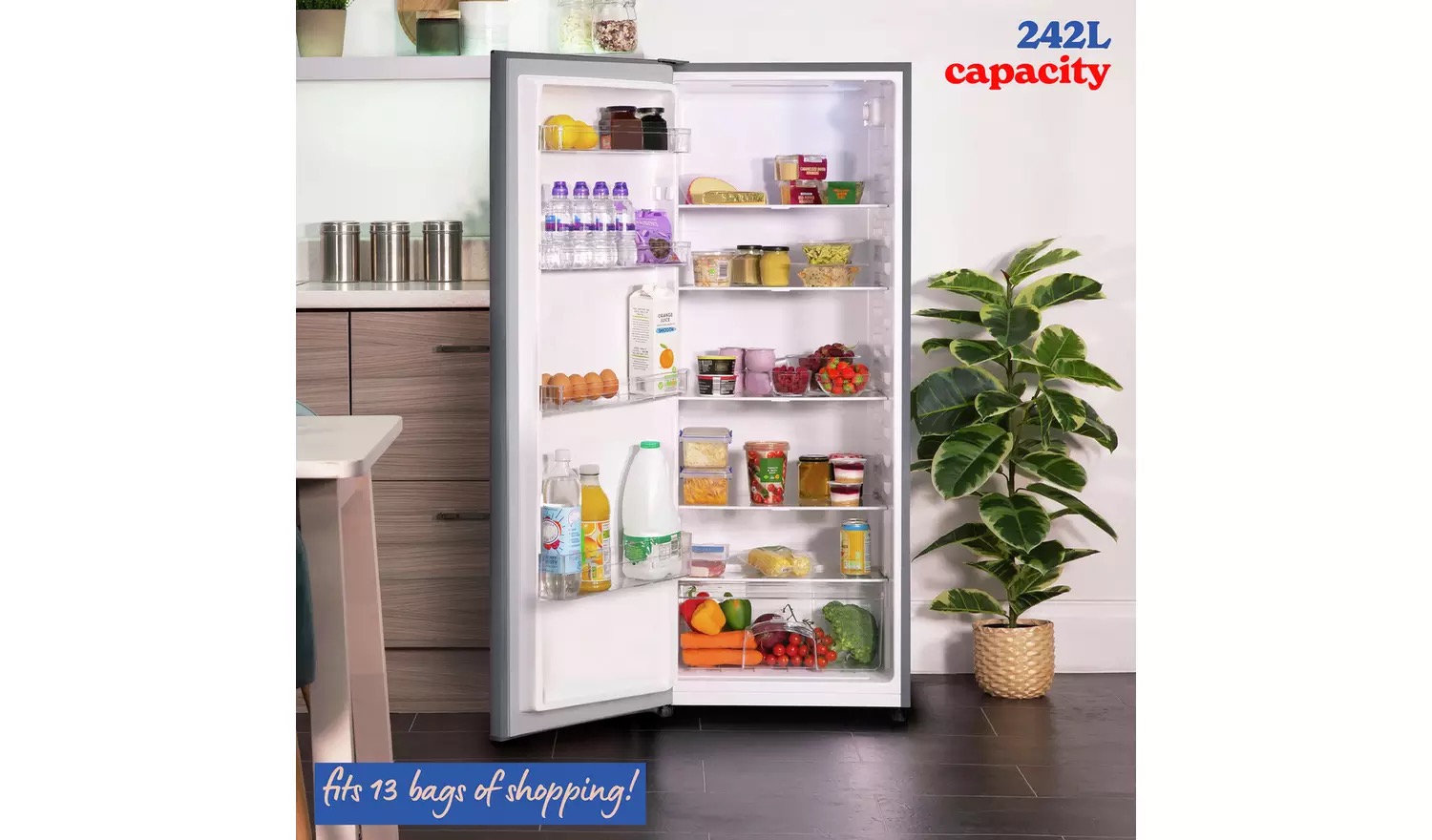 With this fridge its super easy to keep your fresh produce organised with the 4 removable shelves, 1 fixed shelf, 4 door racks and a handy crisper compartment.