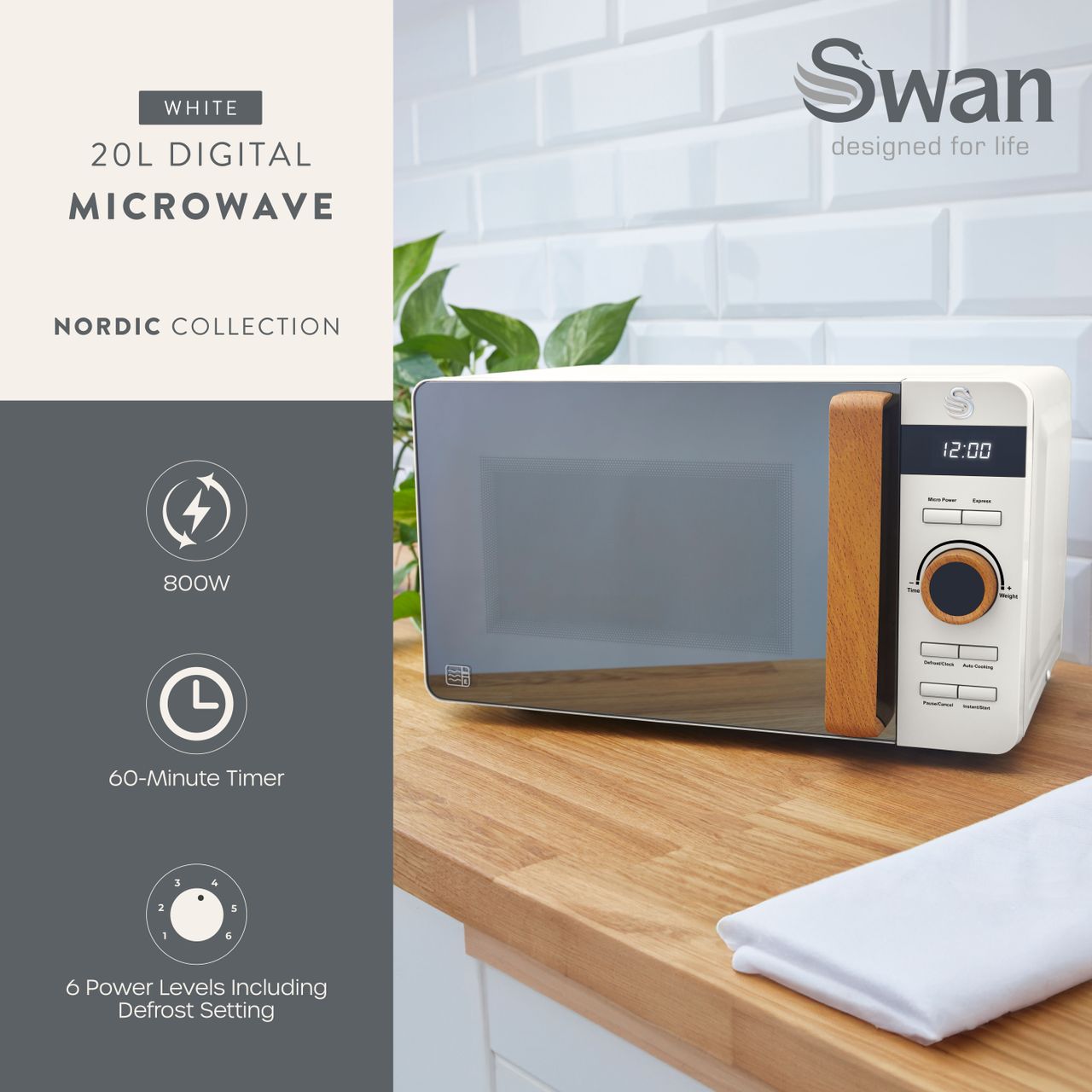 Swan Nordic SM22036LWHTN 20 Litre 26cm High, Freestanding Small Standard Microwave Oven – White